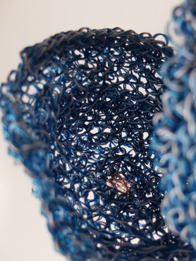 Eloge des mailles de tricot grâce au Nylon et peinture acrylique.